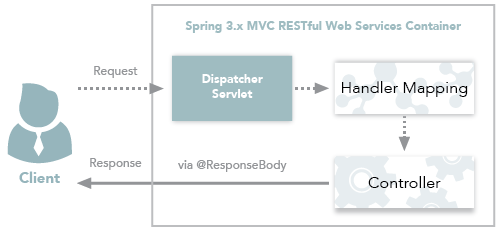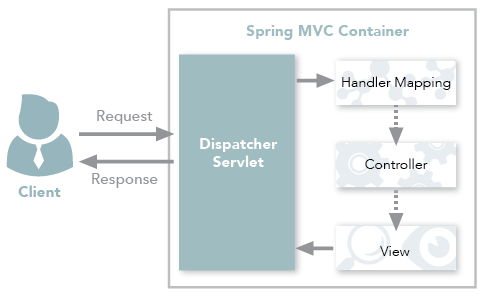 전통적인 Spring MVC의 컨트롤러인 @Controller는 주로 View를 반환하기 위해 사용합니다. 아래와 같은 과정을 통해 Spring MVC Container는 Client의 요청으로부터 View를 반환합니다.
