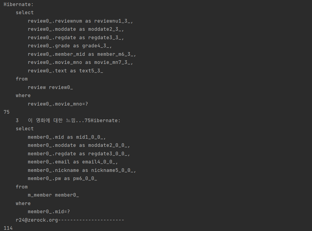 System.out.print("\t"+movieReview.getMember().getEmail());