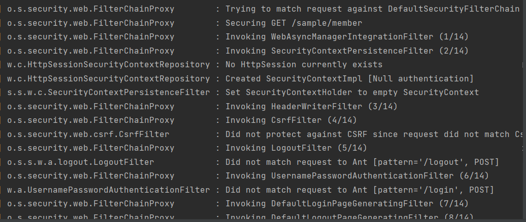서버 내부적으로 여러 개의 필터가 동작하는 것을 확인할 수 있다.