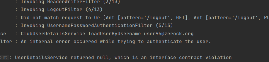 서버에서는 정상적으로 ClubUserDetailsService가 동작하는 것을 확인할 수 있다.