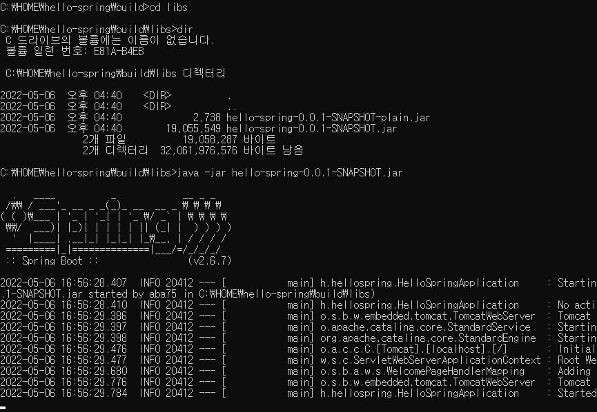 스프링부트 실행완료