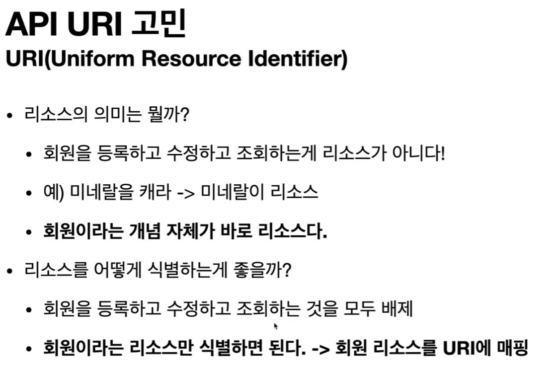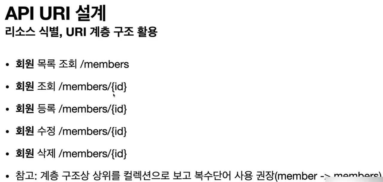 API의 URI를 고민할때 회원 목록/조회/등록/수정/삭제가 있다고 가정하면,