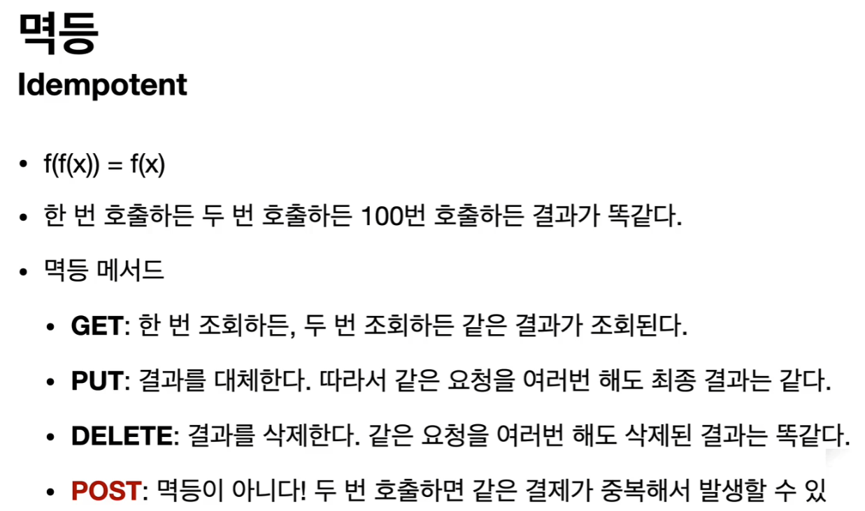멱등이 아닌 예를 들면 결제를 두번하면 중복 결제가 되기 때문에 문제가 발생하는 예시가 있다.