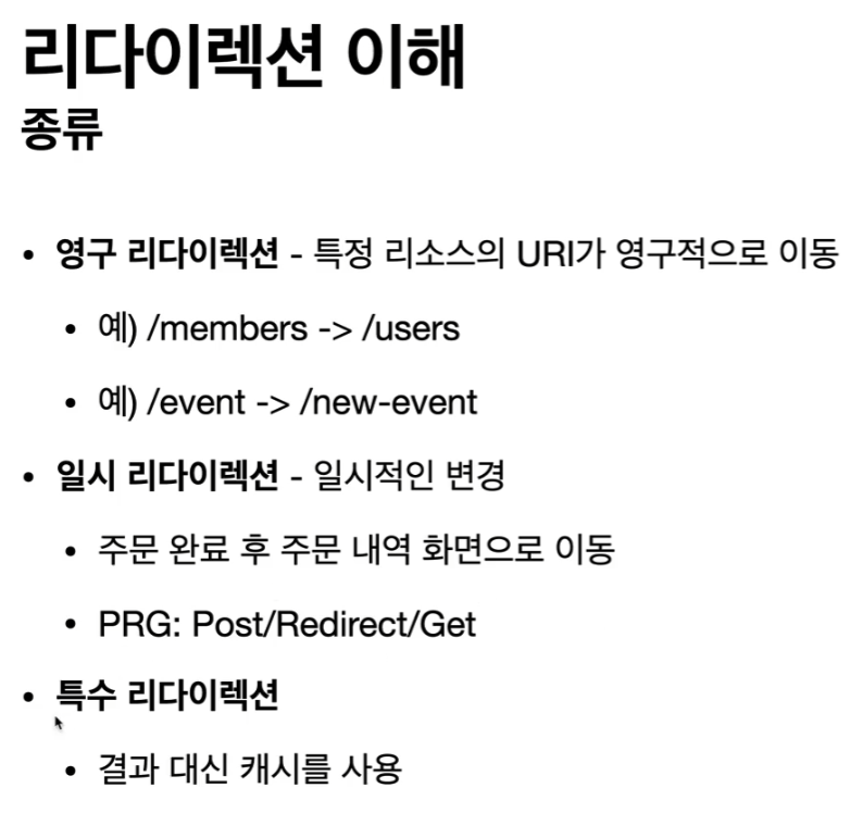 예를 들어 옛날에 사용하던 유저가 /event url를 기억하여 해당 페이지로 접근하였지만 현재 서버에선 해당 url을 사용하지않고 /new-event와 같이 새로운 url을 사용중이라면 서버에서 자동으로 위와같이 redirect 시켜줄수 있다.