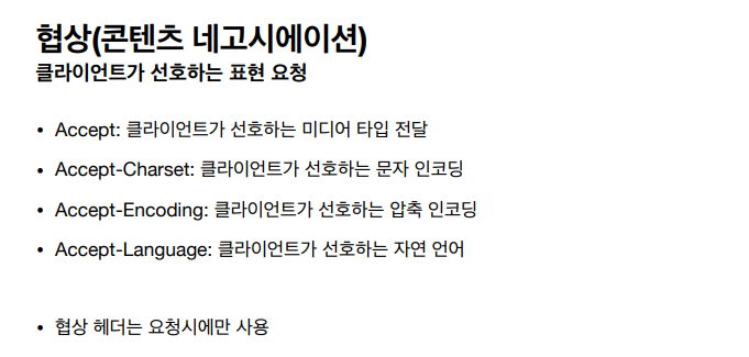 표현 헤더에 Content-Type은 표현 데이터의 형식을 의미하며 Content-Length는 표현 데이터의 길이를 의미한다.