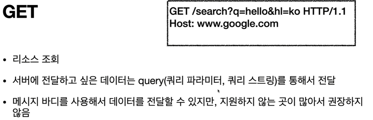 최근에는 get메서드에 body를 담아서 보낼수 있지만 실무에서는 사용하지 않는다고 한다.