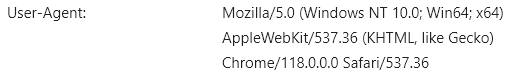 요청에서 사용한다. 클라이언트의 애플리케이션 정보이다. 웹 브라우저 정보등등이 있으며 예시는 아래와 같다.