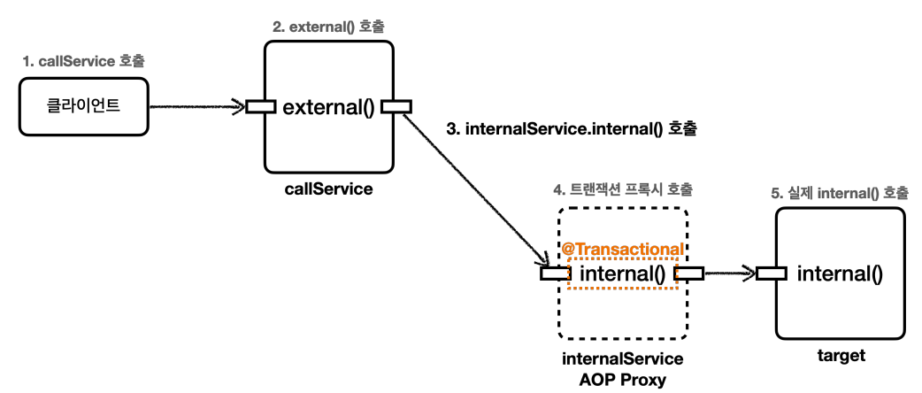 internal()엔 @Transactional이 있기때문에 프록시 internal()을 호출해야 할것 같지만 그렇지 않다.