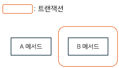 A 메서드는 A메서드만의 트랜잭션을 가지고 B메서드는 B메서드만의 트랜잭션을 가진다.