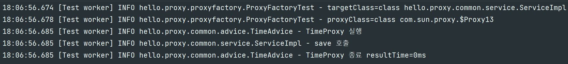 Advice를 생성하였다. 이제 프록시 팩토리에서 위 Advice를 실행하면 된다.