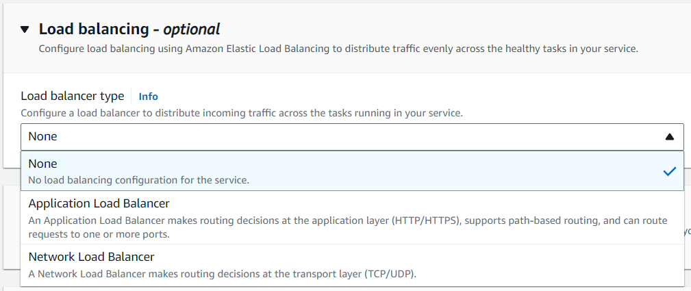 또한 서비스 생성시 로드 밸런싱을 선택할 수 있는데 이를 사용하여 서비스의 네트워크 트래픽을 분산시킬 수 있다.