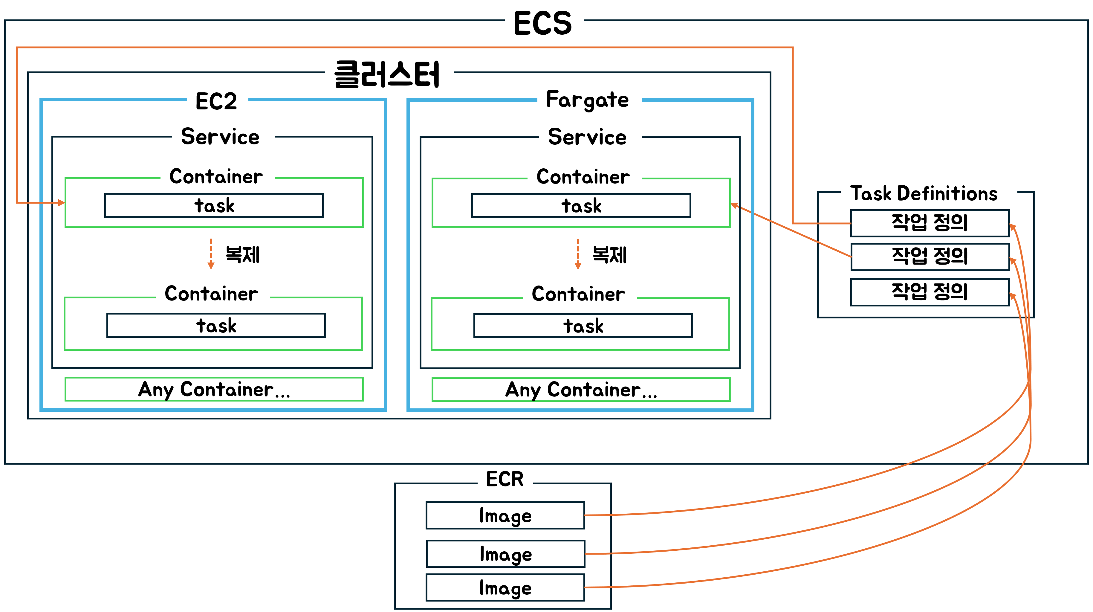 ECS는 *클러스터에서 컨테이너를 쉽게 실행, 중지 및 관리할 수 있게 해주는 컨테이너 관리 서비스이다.