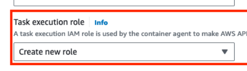 참고로 작업 정의 설정시 Task execution role 즉 권한을 설정하는 부분이 있는데