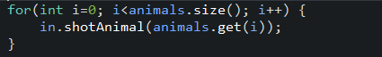 여기서 in.shotAnimal안의 변수 animals.get(i)는 내부적으로는 각각의 (Dog,Cat등) 객체이고 외부적으로 찍히는건 그저