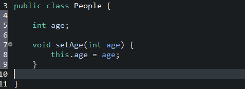 여기서 setAge의 인자 int a 를 필드의 age와 이름을 같게 하려면 어떻게 해야할까?