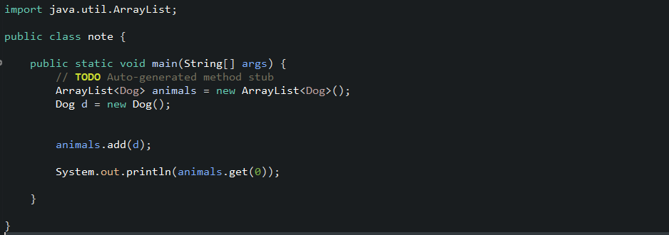 Dog d=myDogArrayList.get(0) // 이렇게 쓰면 안된다