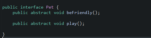 void beFriendly();와 같은 반려동물을 표현하기위한 메서드를 추가할 때