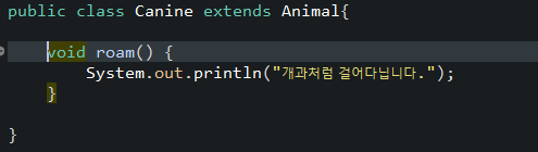 그후 Animal은 자식클래스에서 재정의된 메소드를 호출했다.