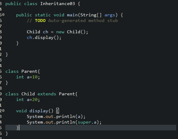 super 키워드는 부모 클래스로부터 상속받은 필드나 메소드를 자식 클래스에서 참조하는 데 사용하는 참조 변수이다.
