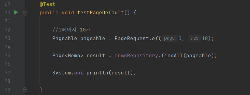 - PageRequest.of()를 이용하여 1페이지의 데이터 10개를 가져옴 (JPA의 페이지 처리는 반드시 '0'부터 시작)