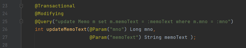 - select가 아닌 DML등을 처리하는 기능(@Modifying과 함께 사용)