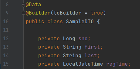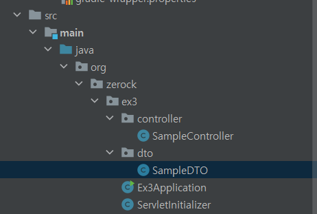 예제를 위해 dto패키지를 만들어 SampleDTO 클래스를 생성후